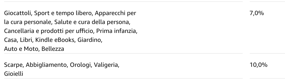 Le commissioni pubblicitarie che il programma di Amazon ti da varia tra l’1 e il 10% a seconda della categoria di prodotto. Non sono altissime, è vero, ma i tuoi guadagni dipendono dal prezzo del prodotto, e possono essere davvero consistenti. Quindi ti consiglio di partire da quelle con la più alta percentuale.