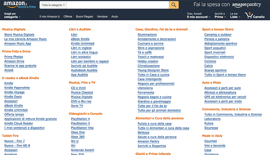 In passato Amazon ha iniziato con i soli libri, oggi vende praticamente tutto quello che è sensato spedire, dall’abbigliamento, all’elettronica, dai giochi all’arredamento di casa ed oggi persino gli alimentari.