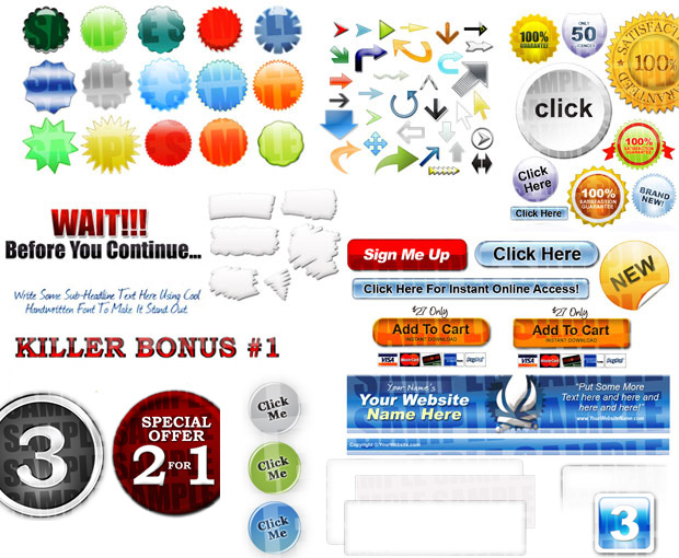 ![]() Web 2.0 Graphics Pack è un altro pacchetto grafico oserei dire bomba. Qui potrai trovare tantissime altre immagini grafiche, più di 2000, che potrai subito utilizzare nel tuo sito web. Come nell'altro bonus, di alcuni troverai anche i file in PSD che ti permetteranno di modificare ogni immagine (testo, colori, forme, effetti, dimensioni, ecc..) Valore 47 Euro |