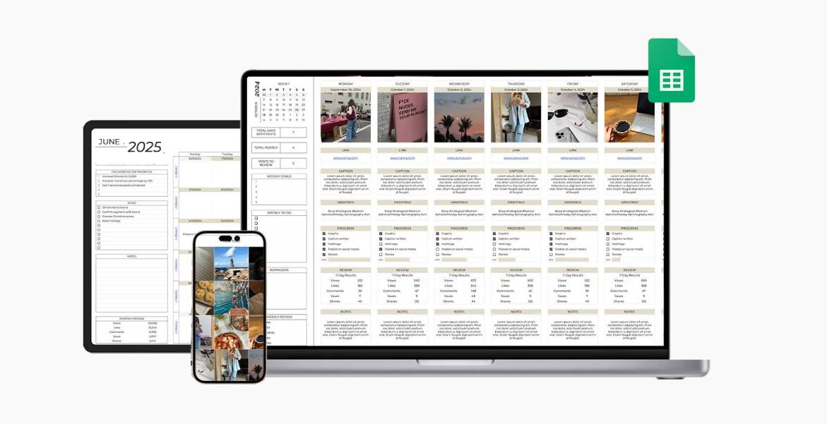 Con 8 schede personalizzabili, questo Social Media Monthly Content Planner è più di un semplice calendario: è uno strumento completo di monitoraggio dei social media, studiato appositamente per soddisfare le esigenze di creatori, addetti al marketing e aziende che mirano a una presenza online coerente. Perfetto per TikTok, Instagram, FB e YouTube.